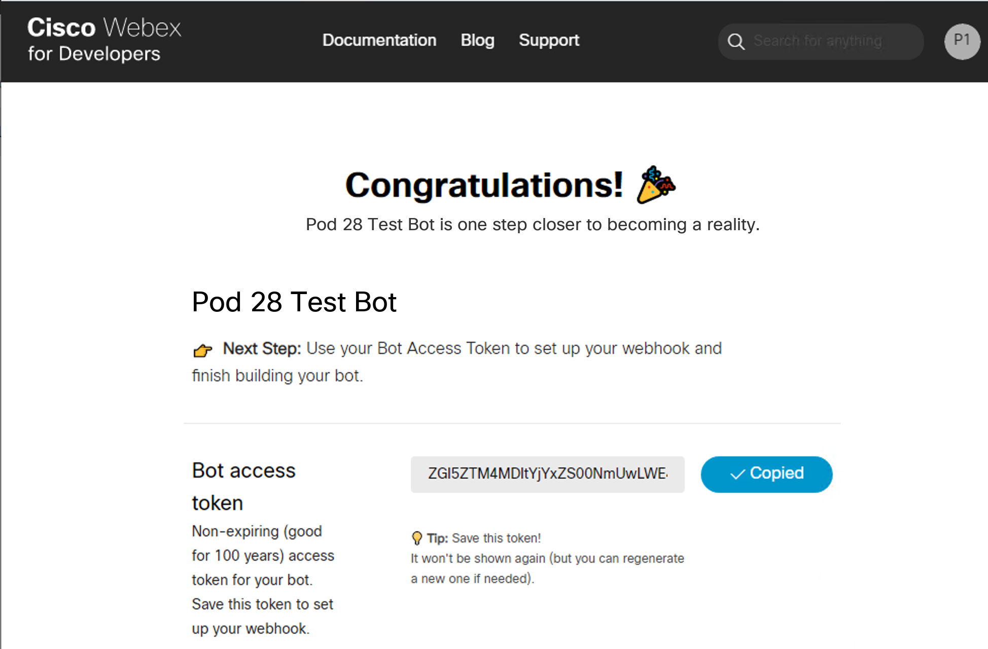 Click Copy next to the Bot Access Token.